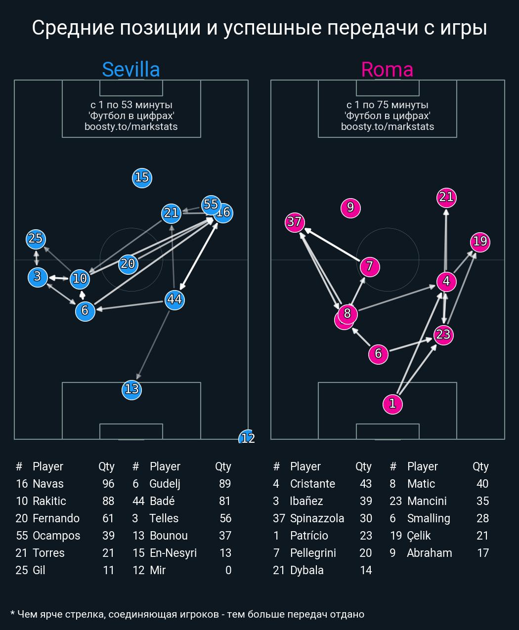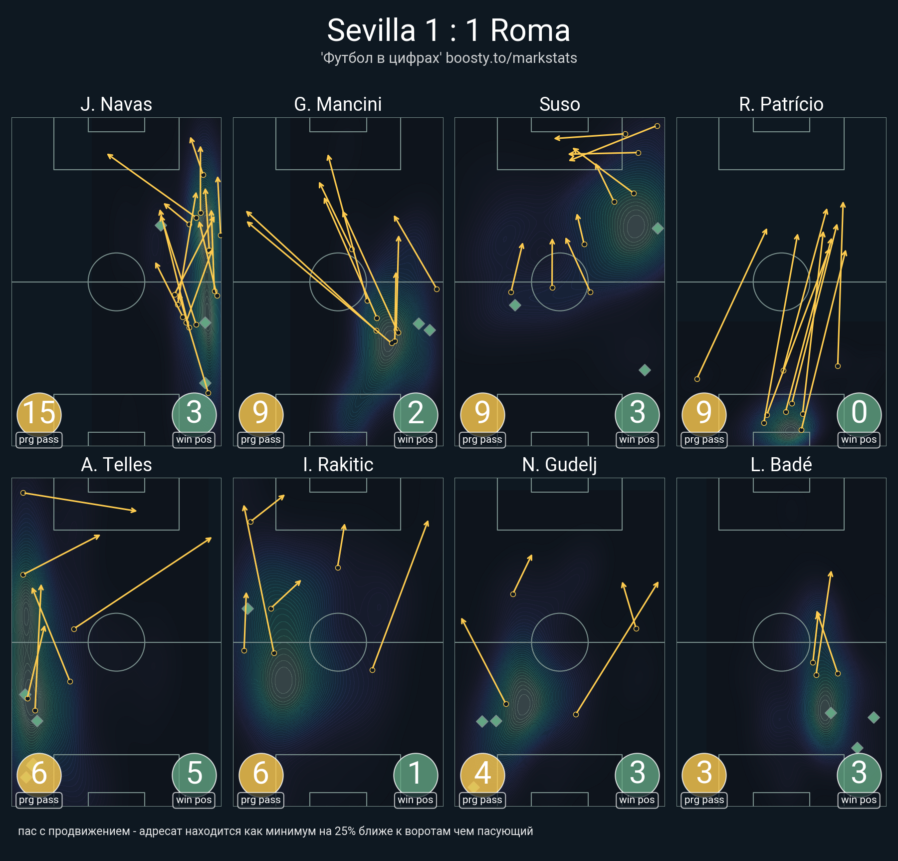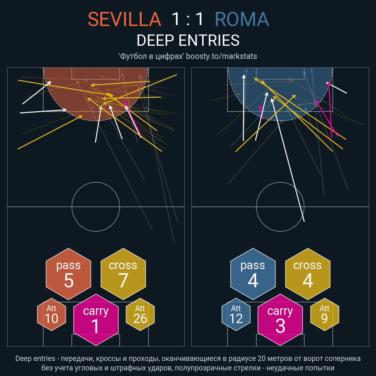 18 успешных передач из 22 попыток (2 под удар, 3 с продвижением, 5 на трети соперника)