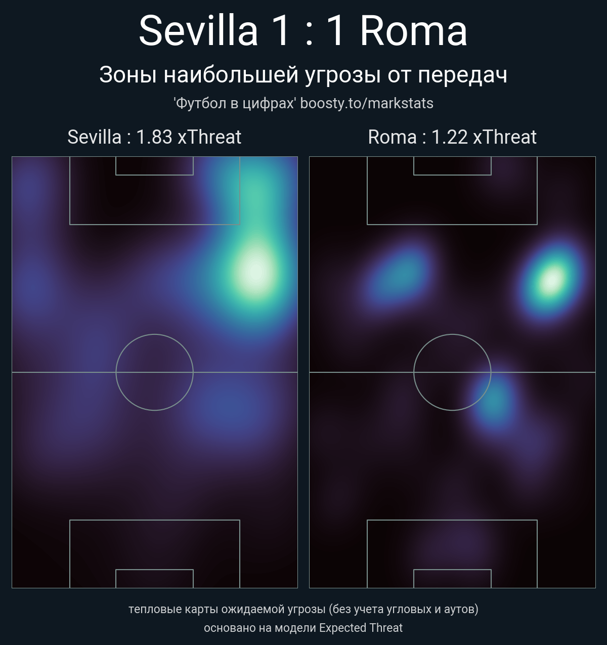 xThreat без учета угловых: 1.83 - 1.22