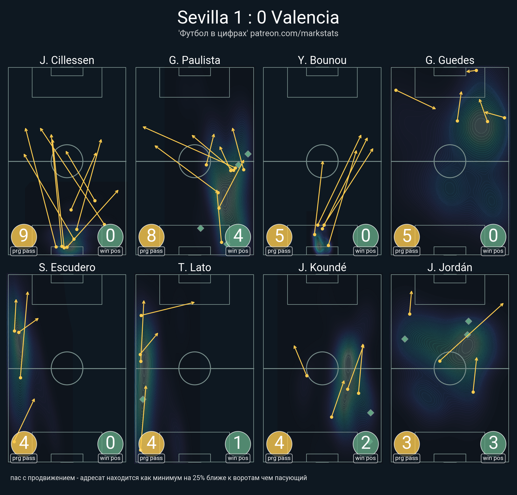 ▪ 22 успешных передач из 34 попыток (9 с продвижением, )