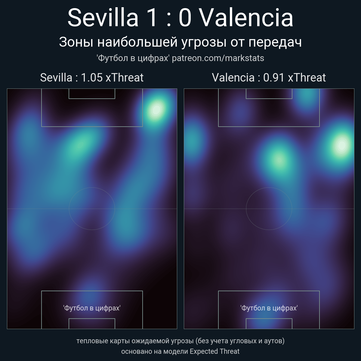 ▪ xThreat без учета угловых: 1.05 - 0.91