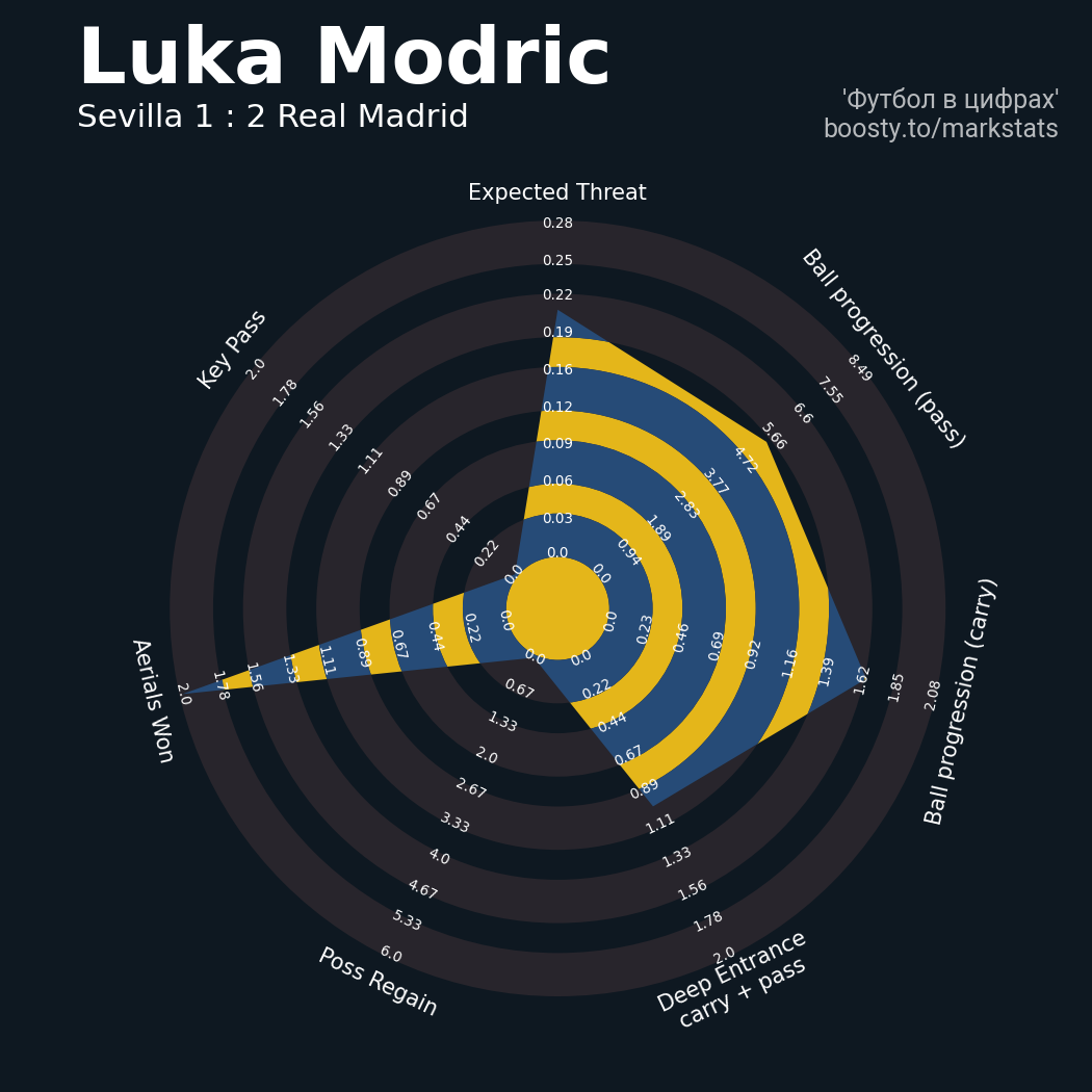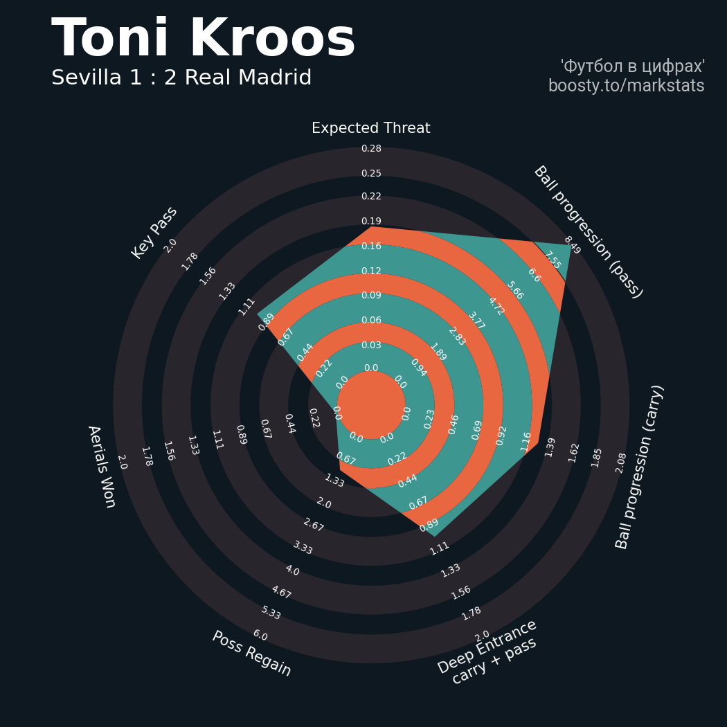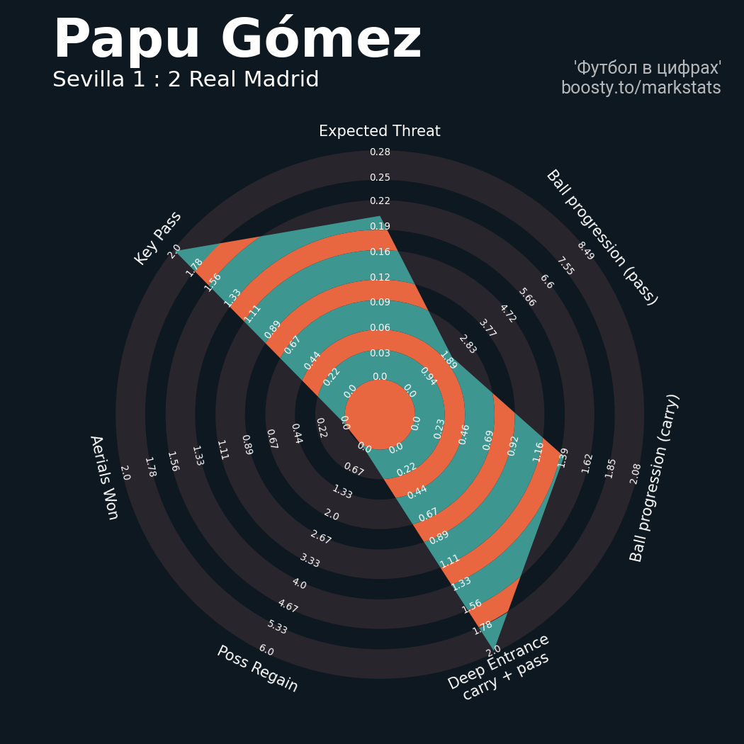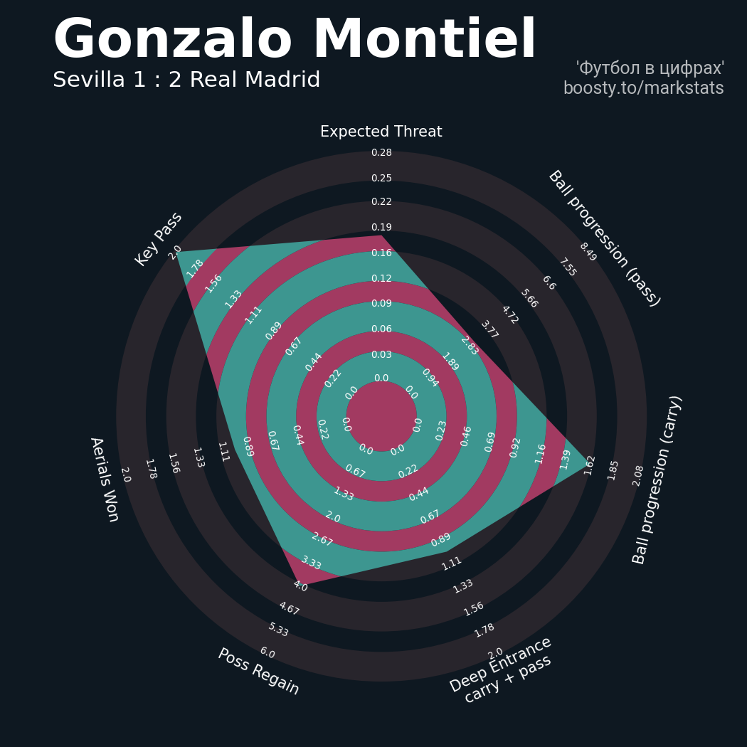 23 успешных передач из 28 попыток (2 под удар, 3 с продвижением, 6 на трети соперника)