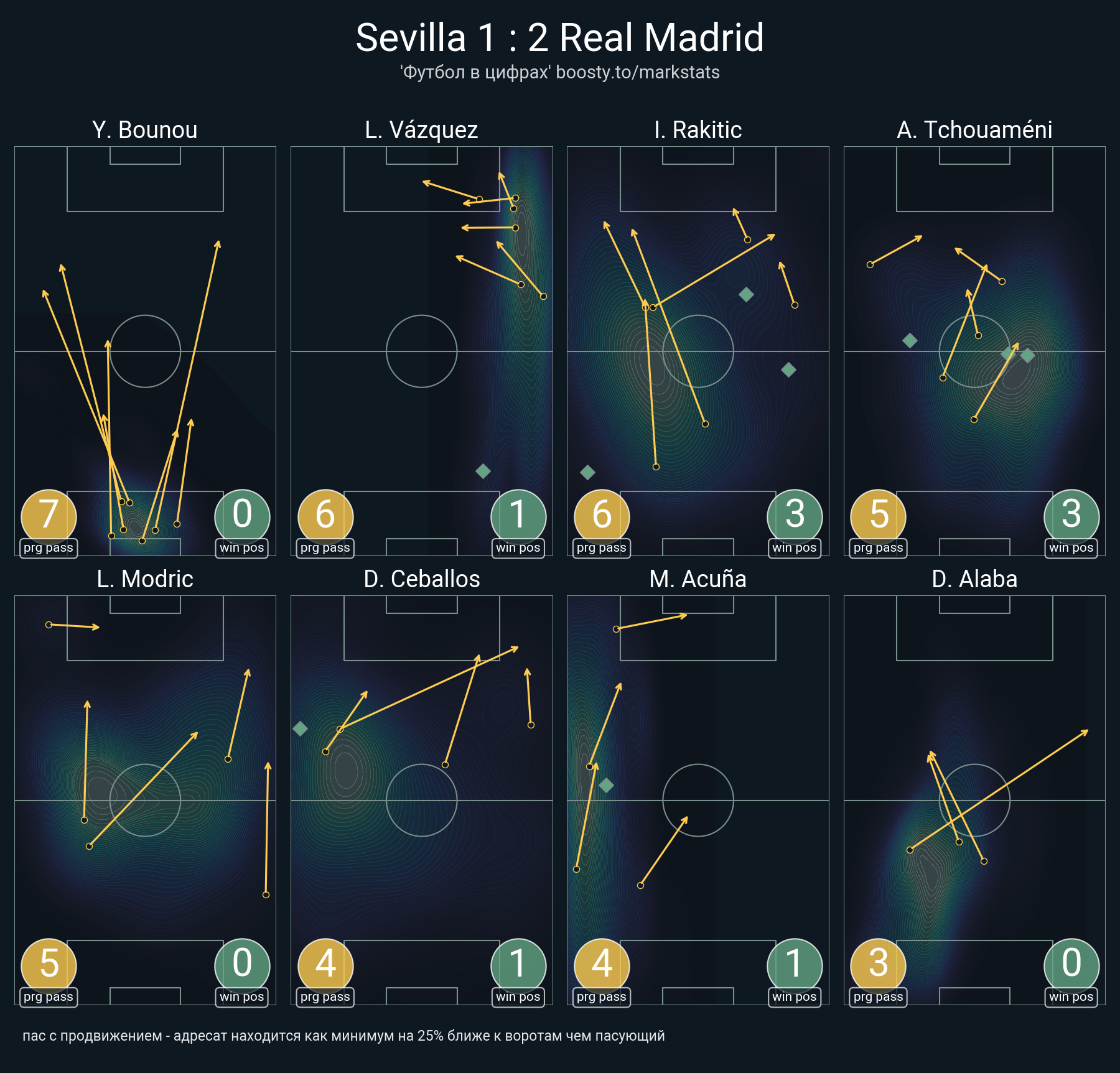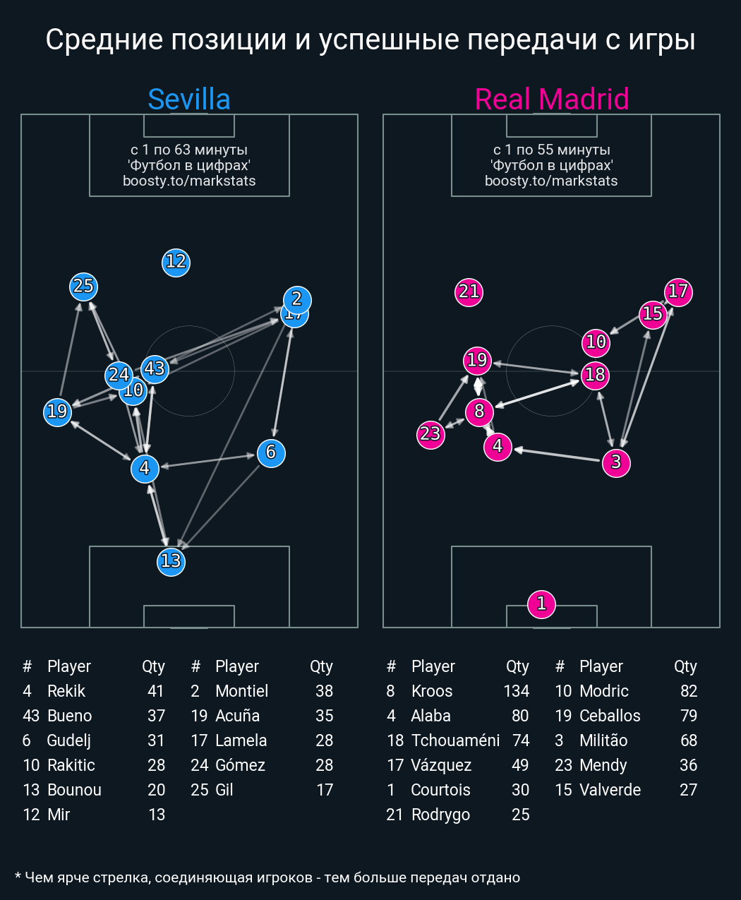 77 успешных передач из 82 попыток (5 с продвижением, 7 на трети соперника)