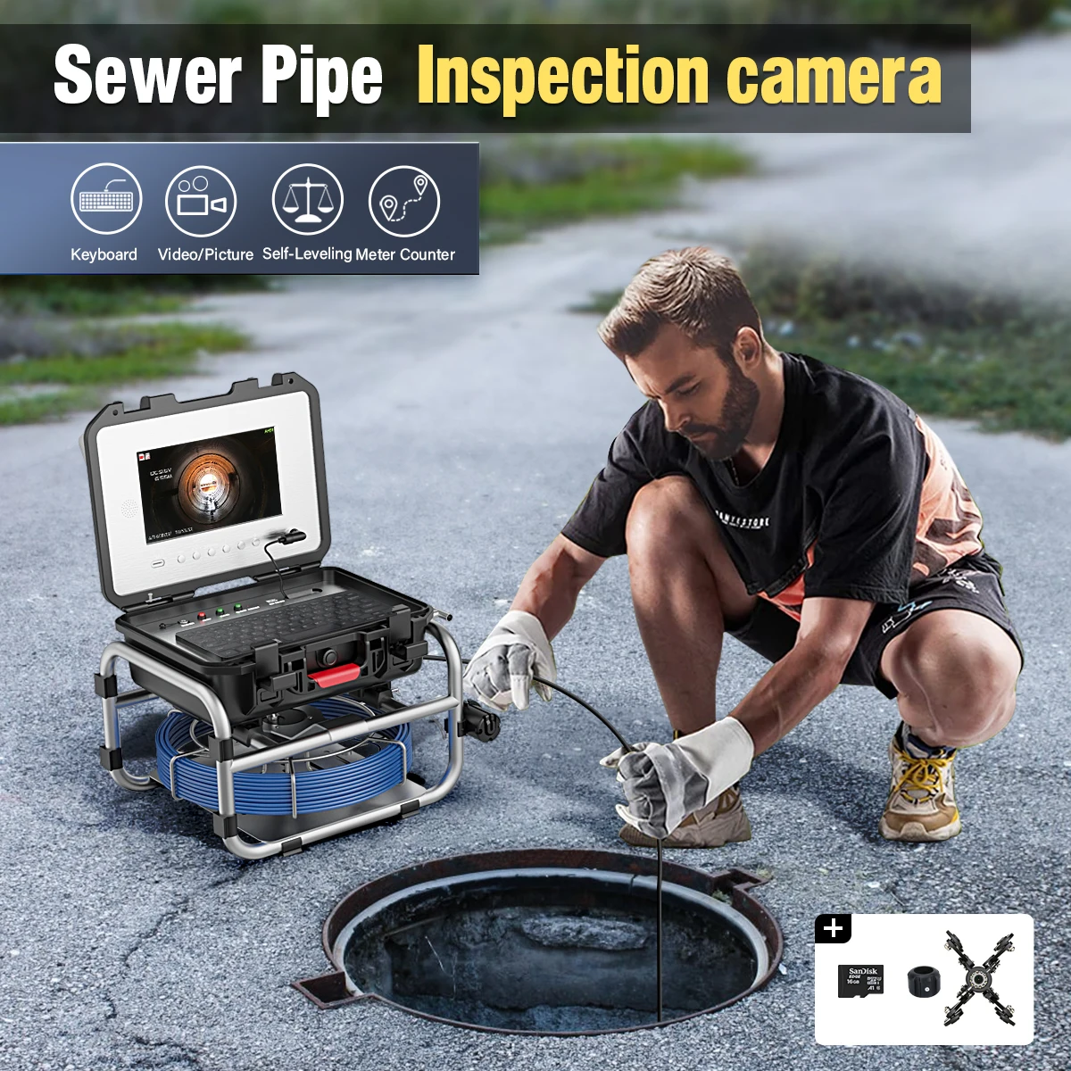 "Sewer Pipe Camera 10 Inch IPS 1080P Screen Pipe Inspection Camera Self-Leveling 512HZ Locator Meter Counter Enlarge Borescope" * Buy Now With Free Shipping Just For $748
