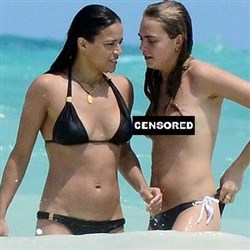 Attention whoring lesbodykes Michelle Rodriguez and model Cara Delevingne were photographed kissing while topless on the beach in Cancun, Mexico. The ocean no doubt smells a little more fishy now that Michelle and Cara have polluted it with their dripping insatiable lesbian desires. Only in Mexico would this type of brazen degeneracy be allowed to ..