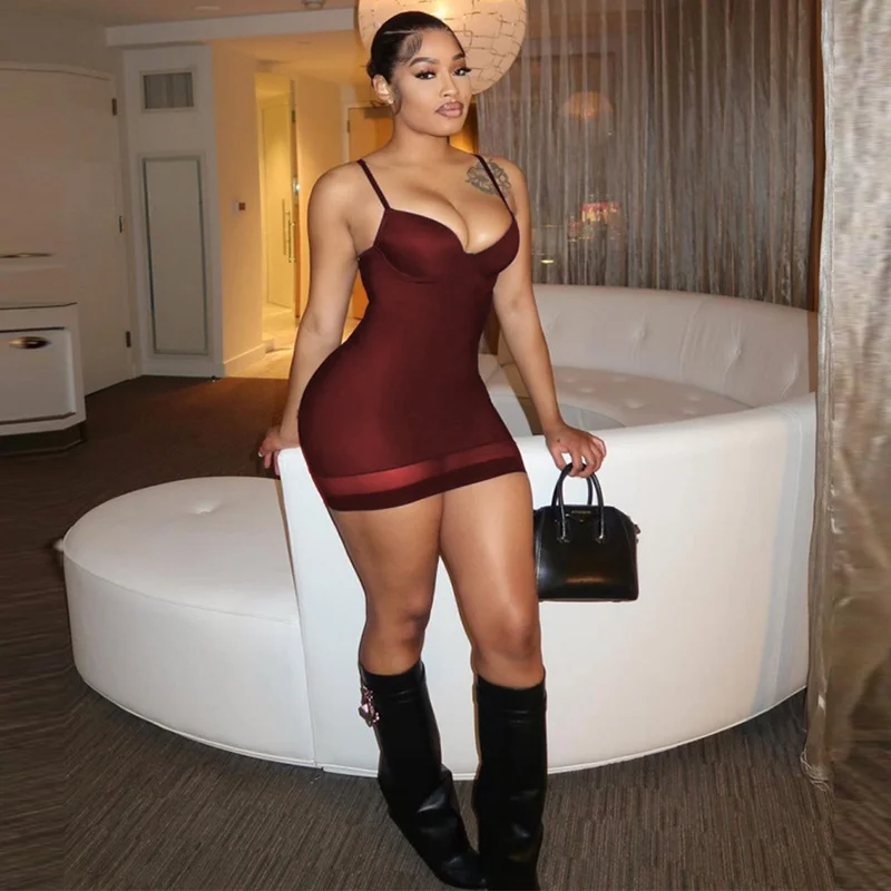 «Sexy Deep V Neck Backless Bodycon Mini Dresses Women Adjustable Spaghetti Strap Sleeveless Sheer Mesh Patchwork See Through Robe» по лучшей цене на рынке! Всего за 23$ (2185рублей)