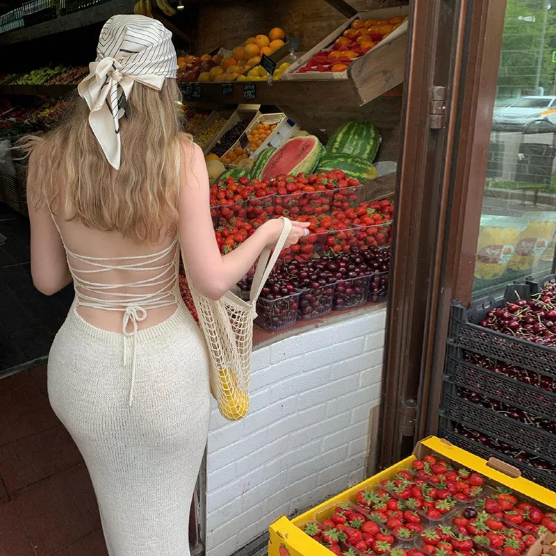 «Sexy Knitted Sweater Dresses for Women Spring Elegant Party Strappy Lace Up Backless Split Summer Bodycon Midi Dress» по лучшей цене на рынке! Всего за 17$ (1615рублей)
