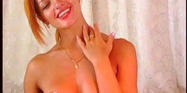 Sexy redhead strips plays with herself