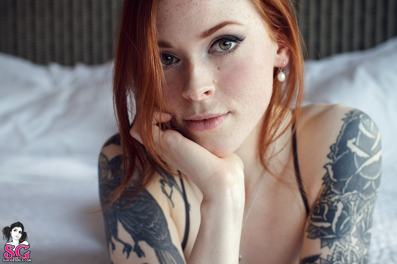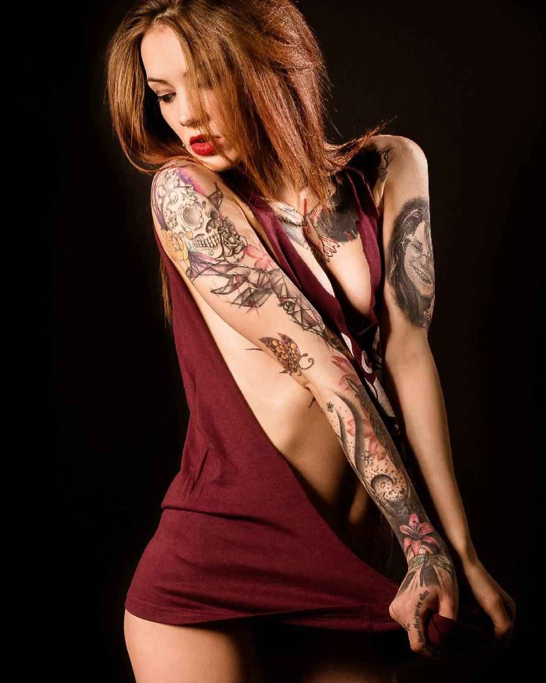 Sexy redhead tattoo model teases with 163 photos