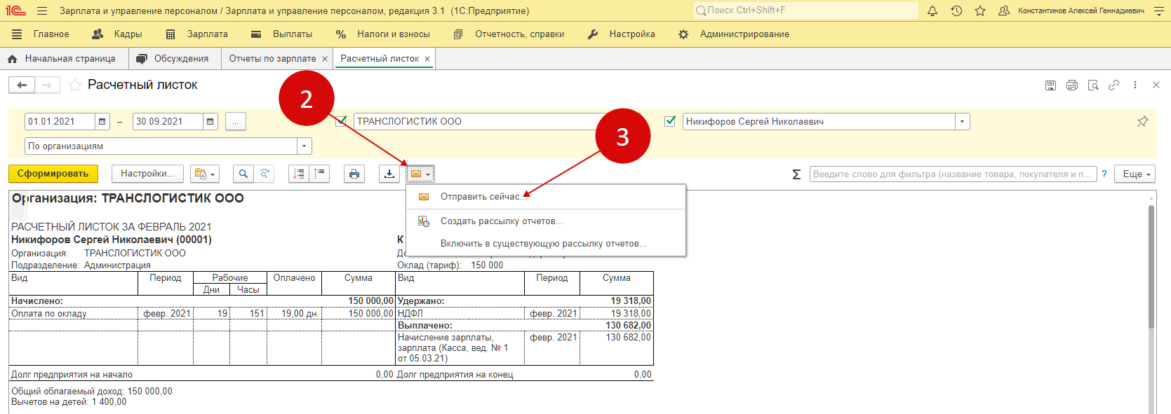 Сформировать расчетный листок в 1с зуп