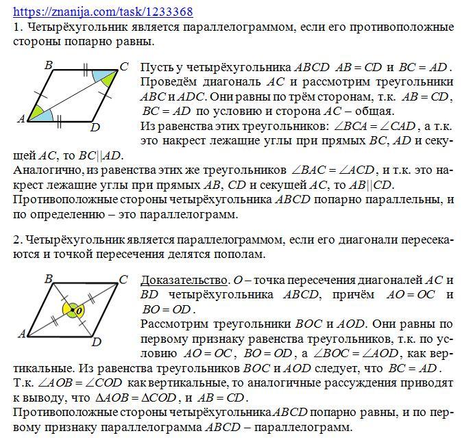 Сформулируйте 3 признака параллелограмма 114 фотографий