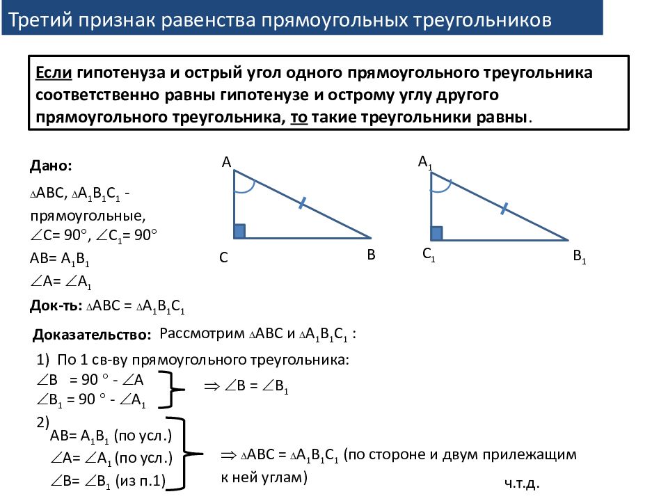 Сформулируйте свойства прямоугольных треугольников 7 класс 102 фото