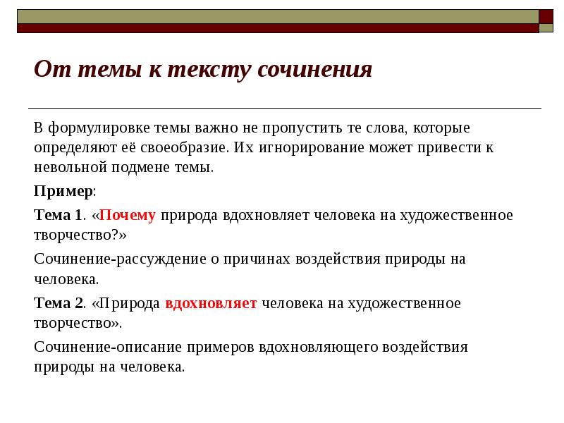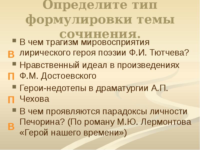 Сформулируйте тему произведения
