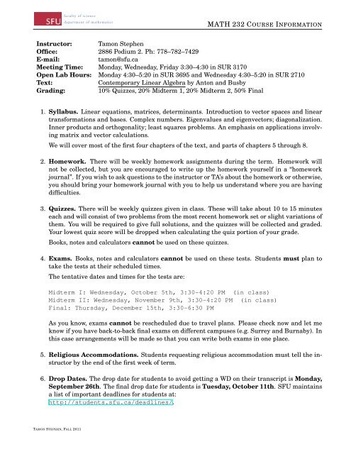 Academic Dates - Fall Calendar - Simon Fraser University