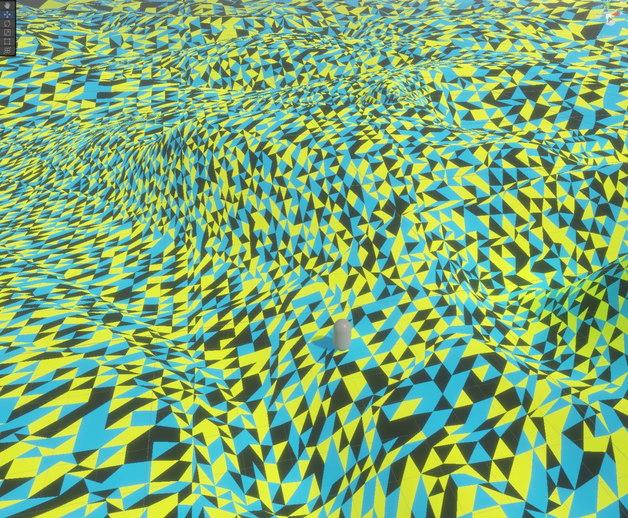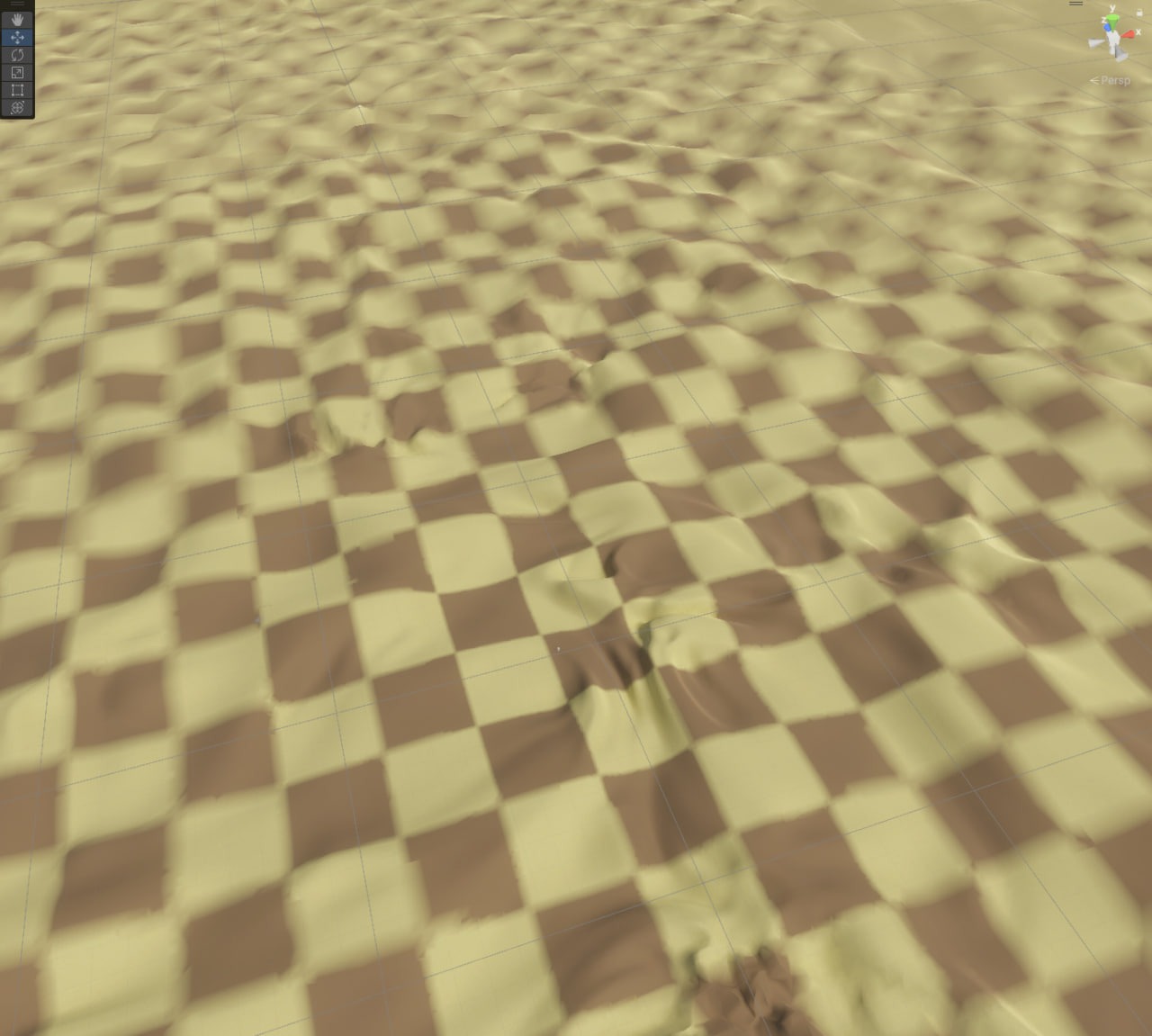 Вы могли заметить, что ландшафт уже не просто залит одним цветом, а вполне себе затекстурен, причем смешивание плавное. Есть поддержка множества материалов (до 32 на чанк и 4 на пиксель), материалы могут быть разными. Хотя так было не всегда...