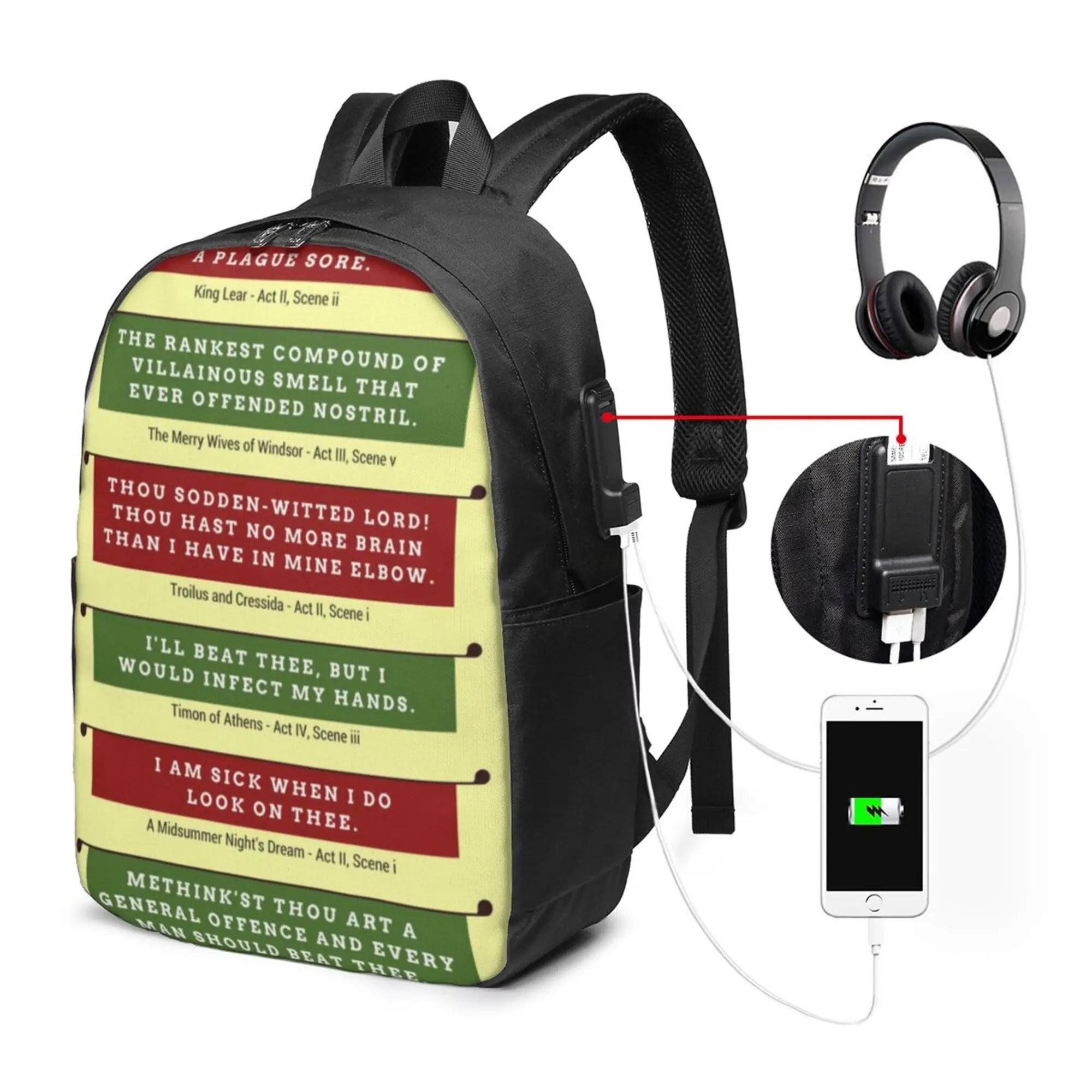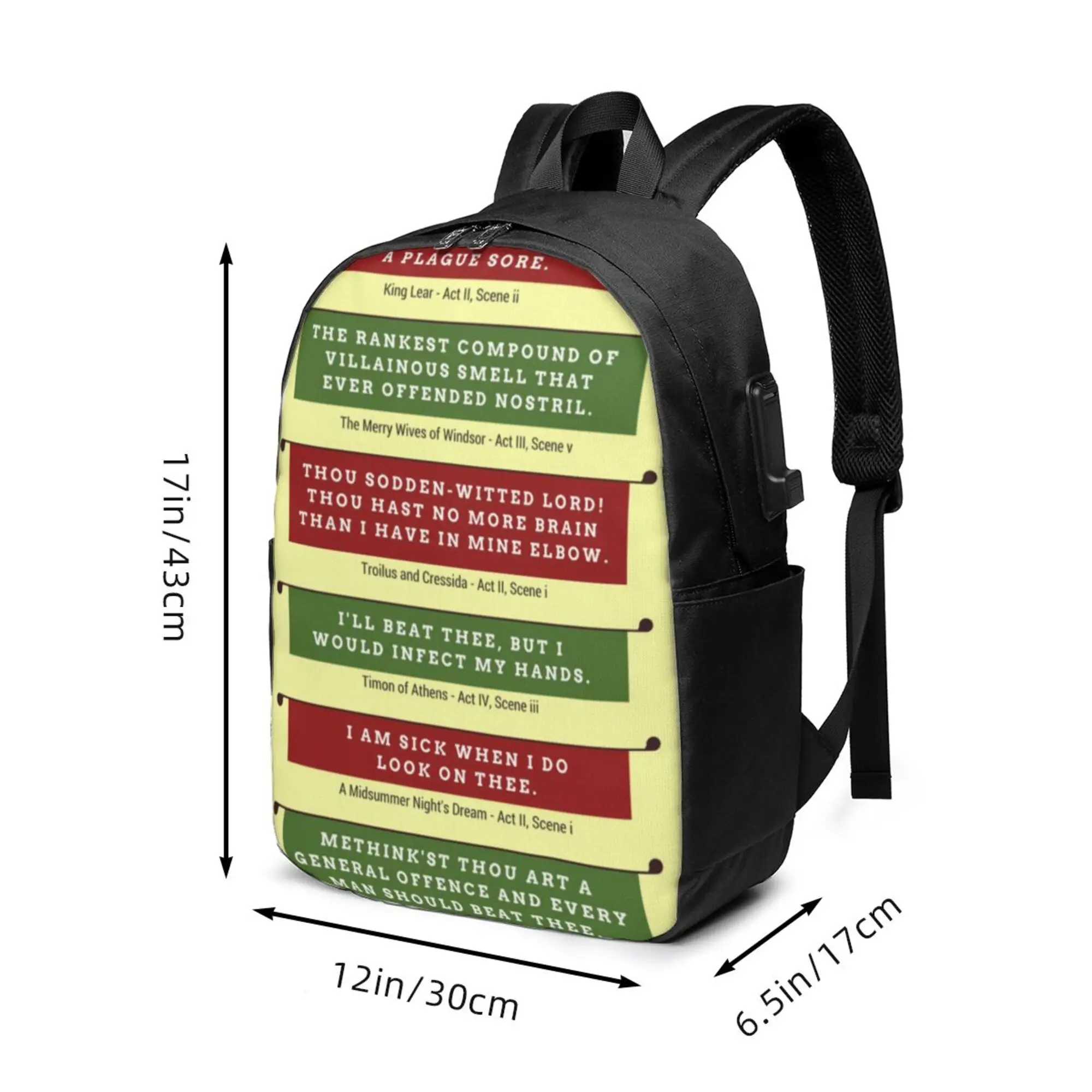 Shakespeare's Insults Repertory Large Capacity School Backpack Notebook Fashion Waterproof Adjustable Travel Sports Backpack - Купить с бесплатной доставкой