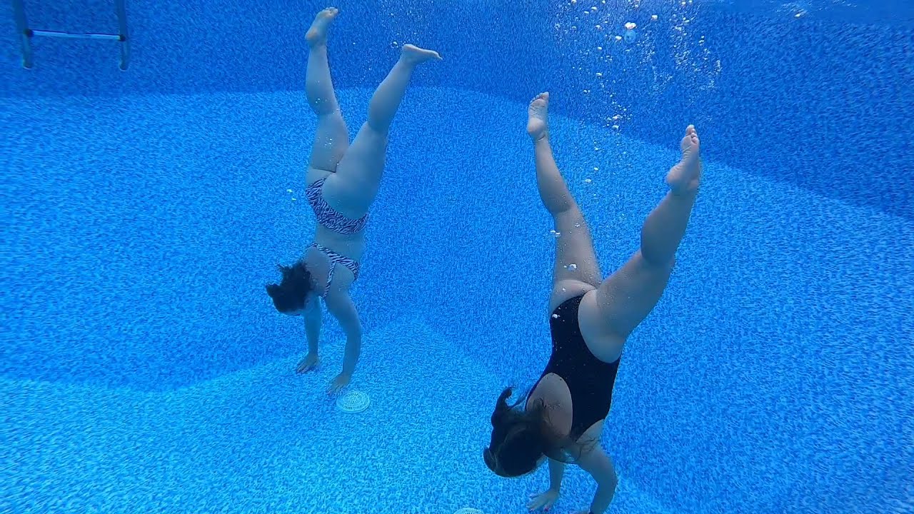 Shapely model entertains at the pool