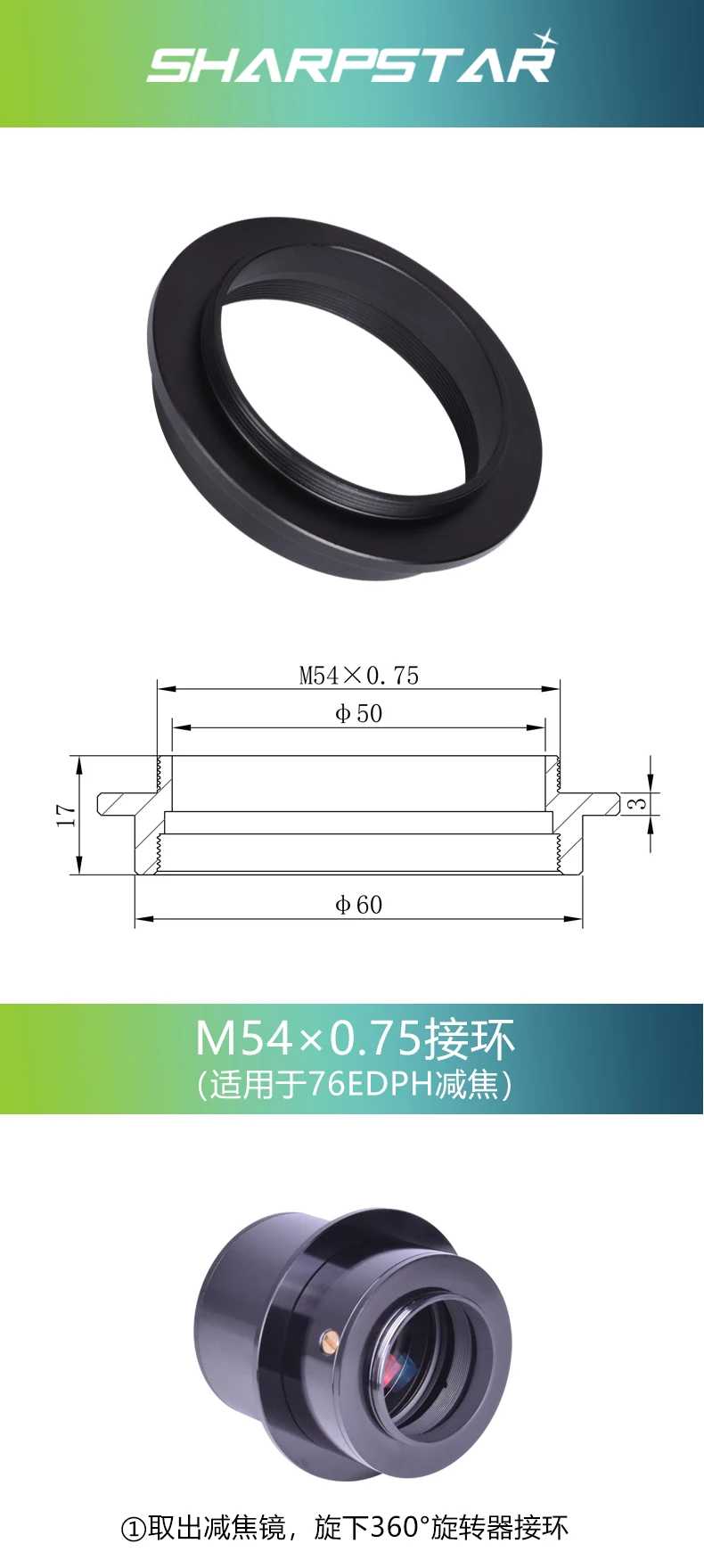 «Sharpstar Askar M54 × 0.75 adapter ring astronomical fitting is applicable to 76EDPH astronomical camera telescope fitting» по лучшей цене на рынке! Всего за 16$ (1520рублей)