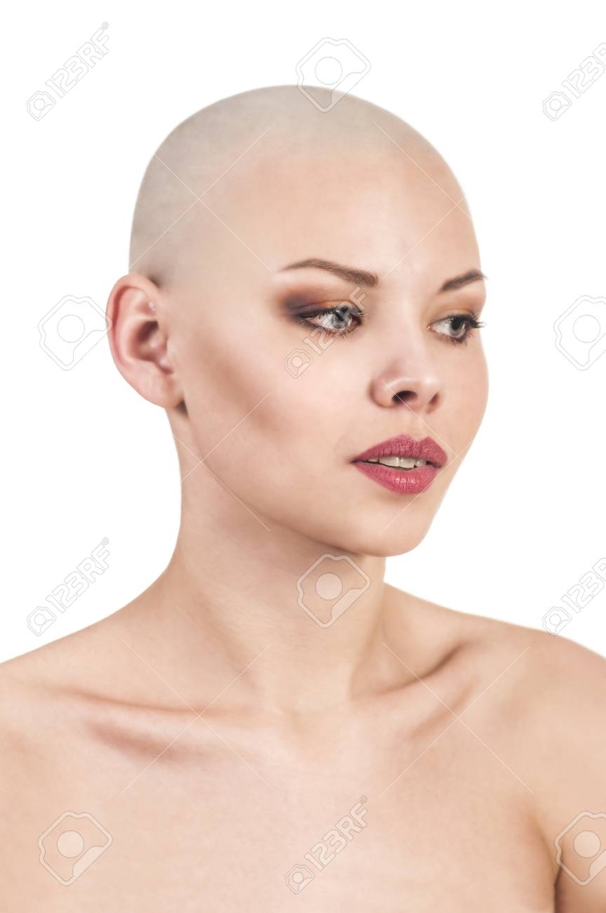 Shaved head bald girl