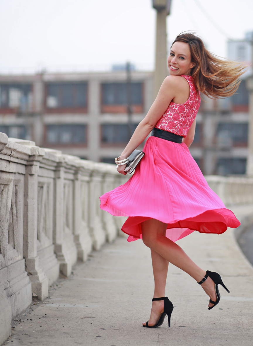 She s got a pretty pink skirt