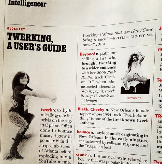 Twerking Strikes Me In a study of Nicki Minaj and how she uses personas and black culture to further her brand, my brain immediately goes to twerking . Merriam-Webster defines twerking as "sexually suggestive dancing characterized by rapid, repeated hip thrusts and shaking of the buttocks especially while squatting ."