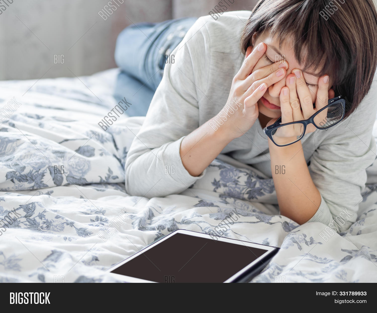 She was lying in bed when