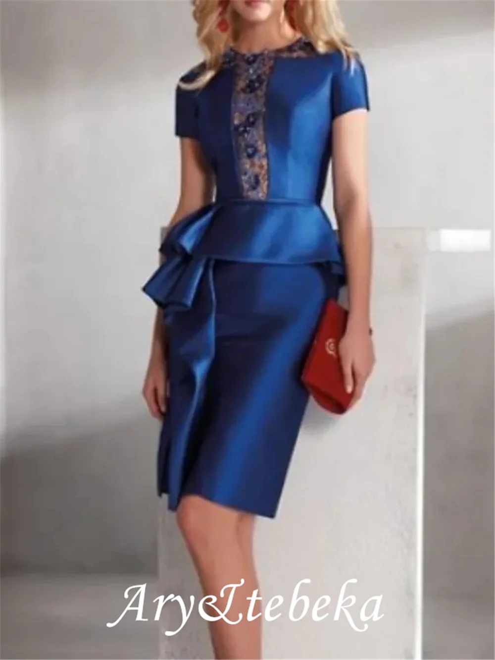 GfnGUsQpLooked for Sheath / Column Mother of the Bride Dress Elegant Jewel Neck Knee Length Lace Satin Short Sleeve with Ruffles Draping Appliques for a long time, but could not find it? Bring to your attention Sheath / Column Mother of the Bride Dress Elegant Jewel Neck Knee Length Lace Satin Short Sleeve with Ruffles Draping Appliques with the best price!