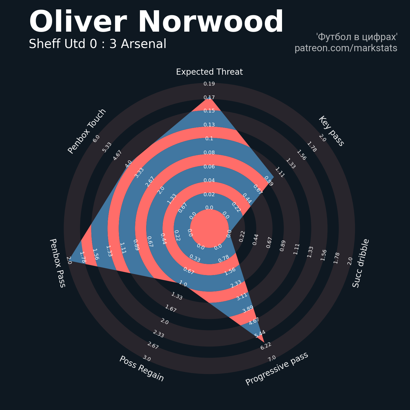 ▪ Ожидаемые голы (NPxG): 0.22 - 1.2