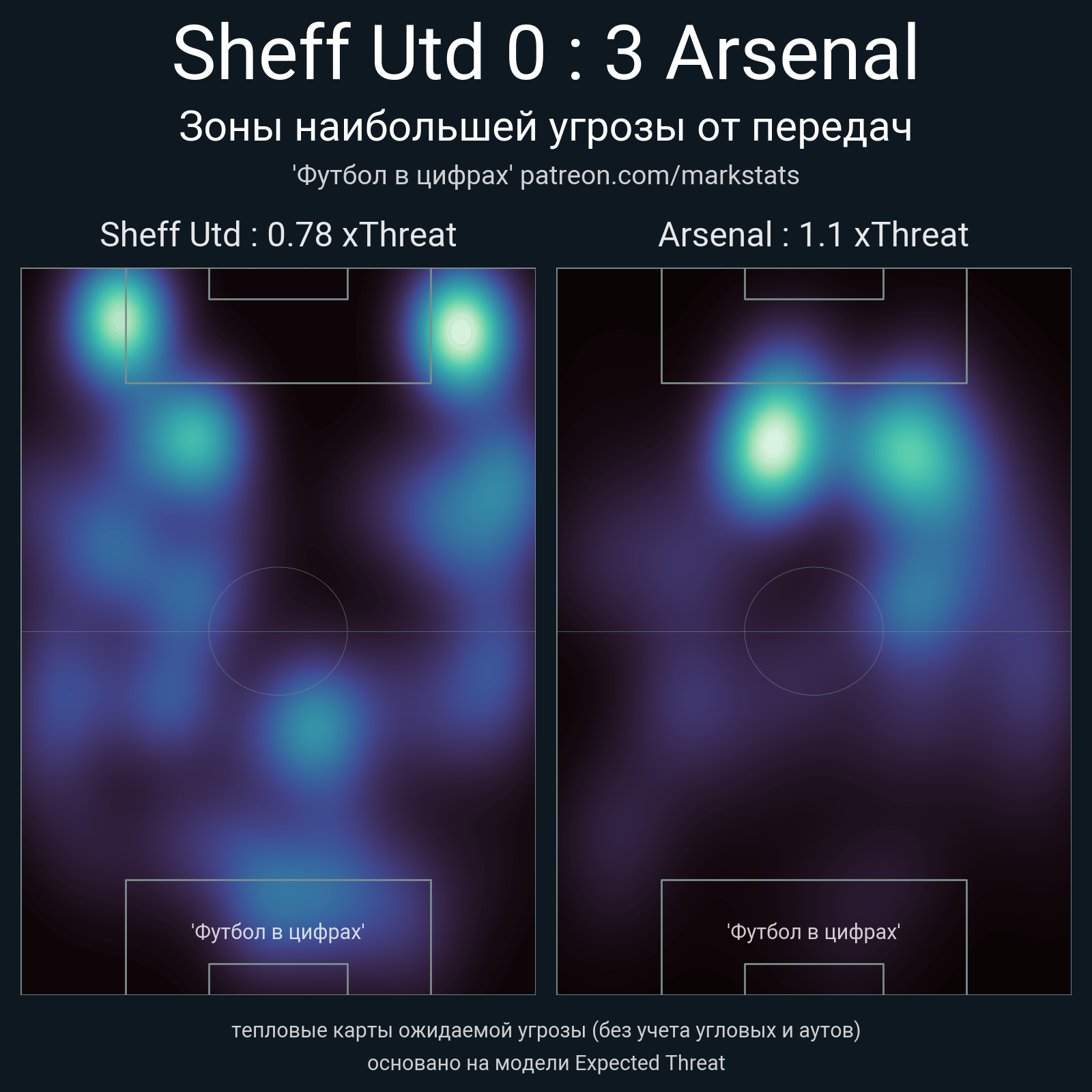 ▪ xThreat без учета угловых: 0.78 - 1.1
