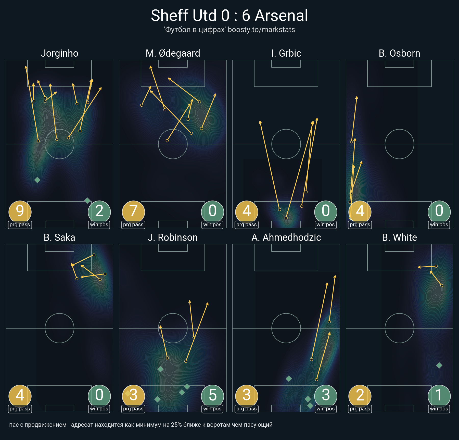 21 успешных передач из 27 попыток (1 ассист, 3 под удар, 4 с продвижением, 13 на трети соперника)