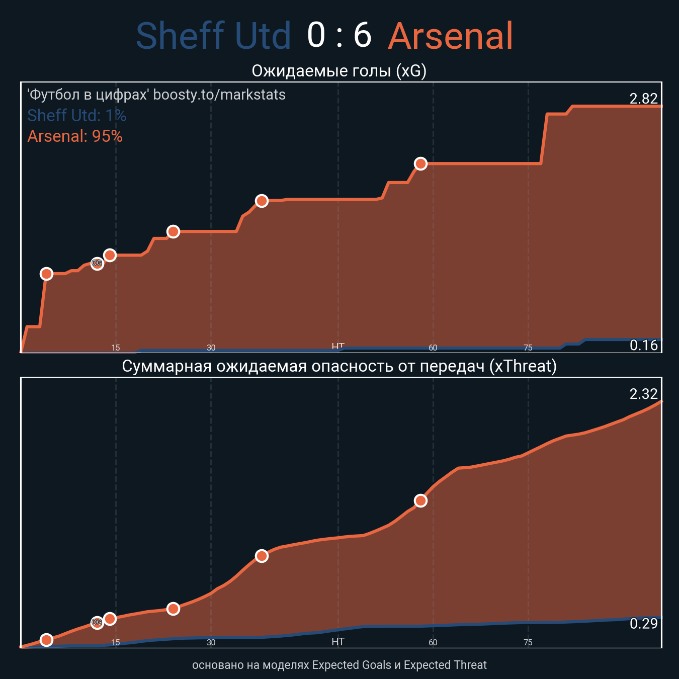 Ожидаемые голы (NPxG): 0.16 - 2.82