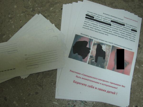 Болт в листовку вставляем тот, который прислала нам жертва, если жертва воздержалась от показа своих гениталий, то вставляем фотку любого болта. И вторая листовка на фоне стопки конвертов. Конверты нынче дорогие, поэтому сверху ложите нормальный с маркой, а ниже стопку без марок, они дешевые. У меня не осталось фото с листовками и конвертами с тех времен, поэтому я сделал фото из