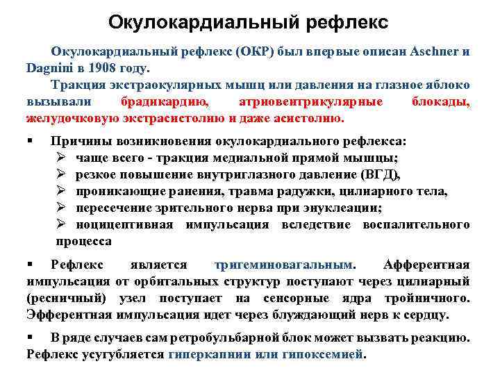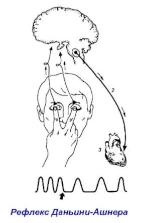 Схема рефлекторной дуги глазосердечного рефлекса