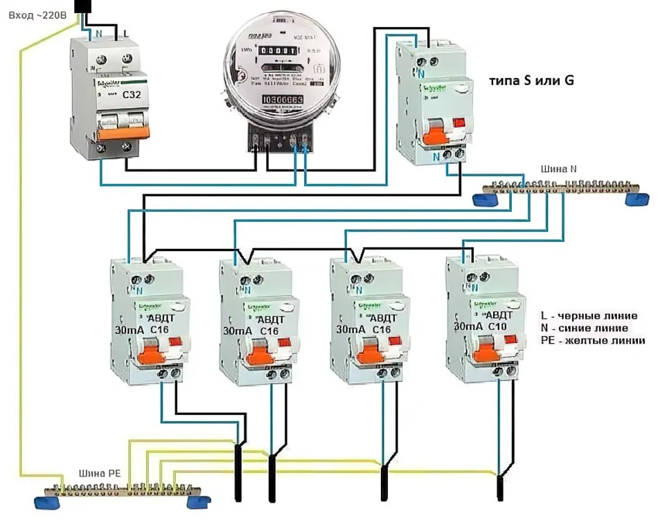 Схема щитка с дифавтоматом 110 фотографий
