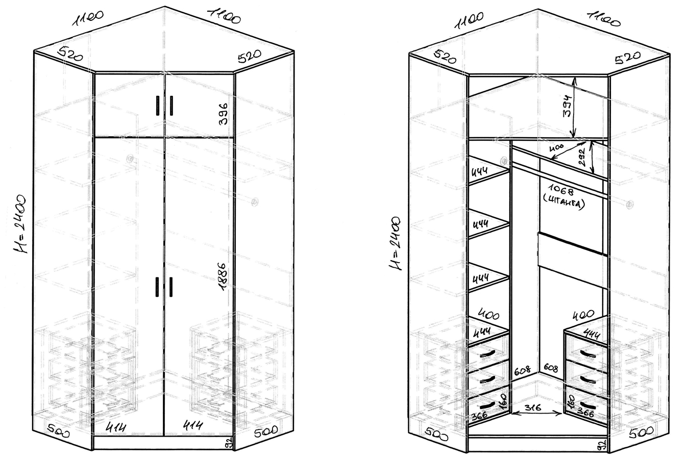 Схема шкафов купе угловые 116 фото