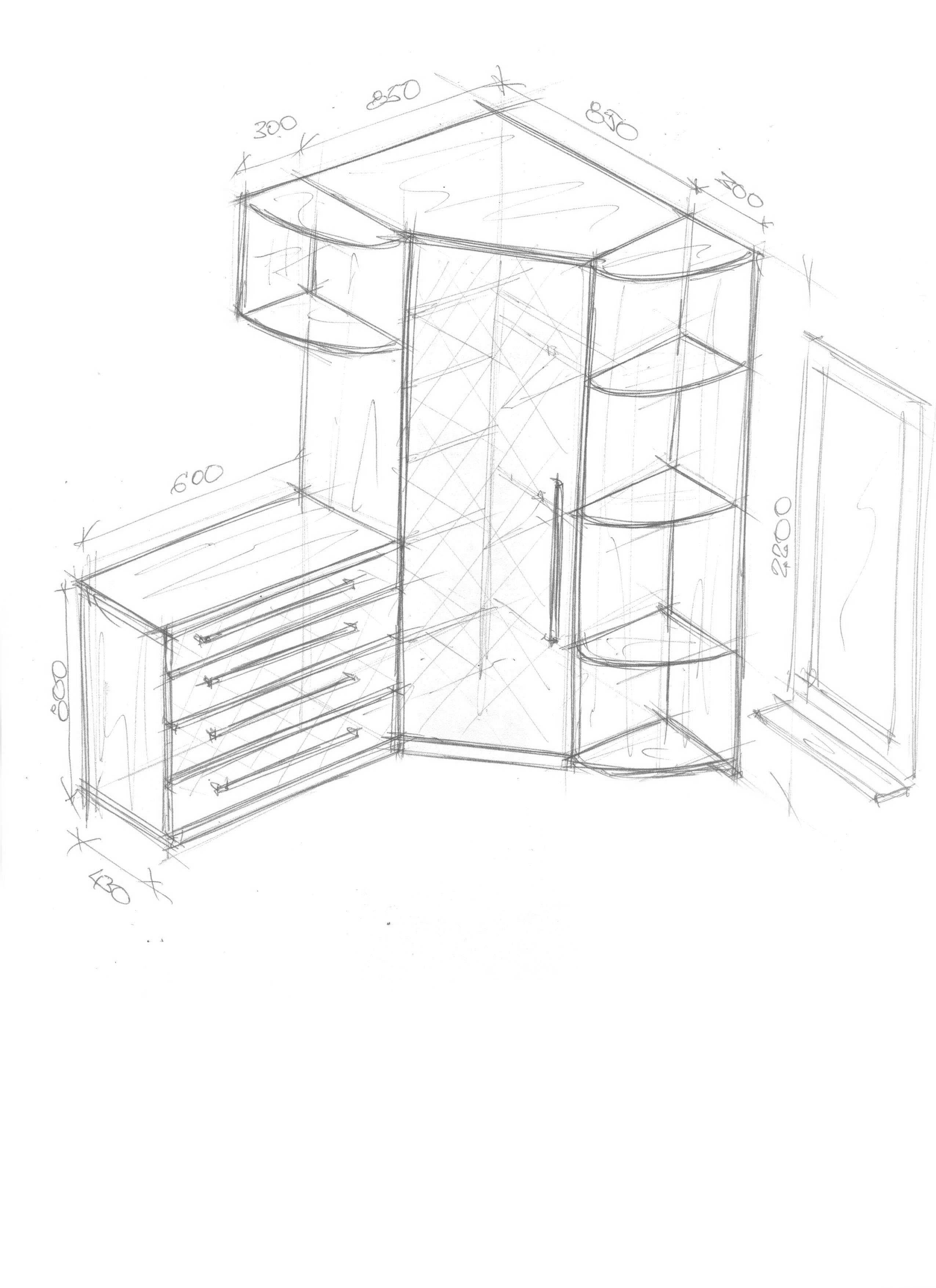 Схема шкафов купе угловые