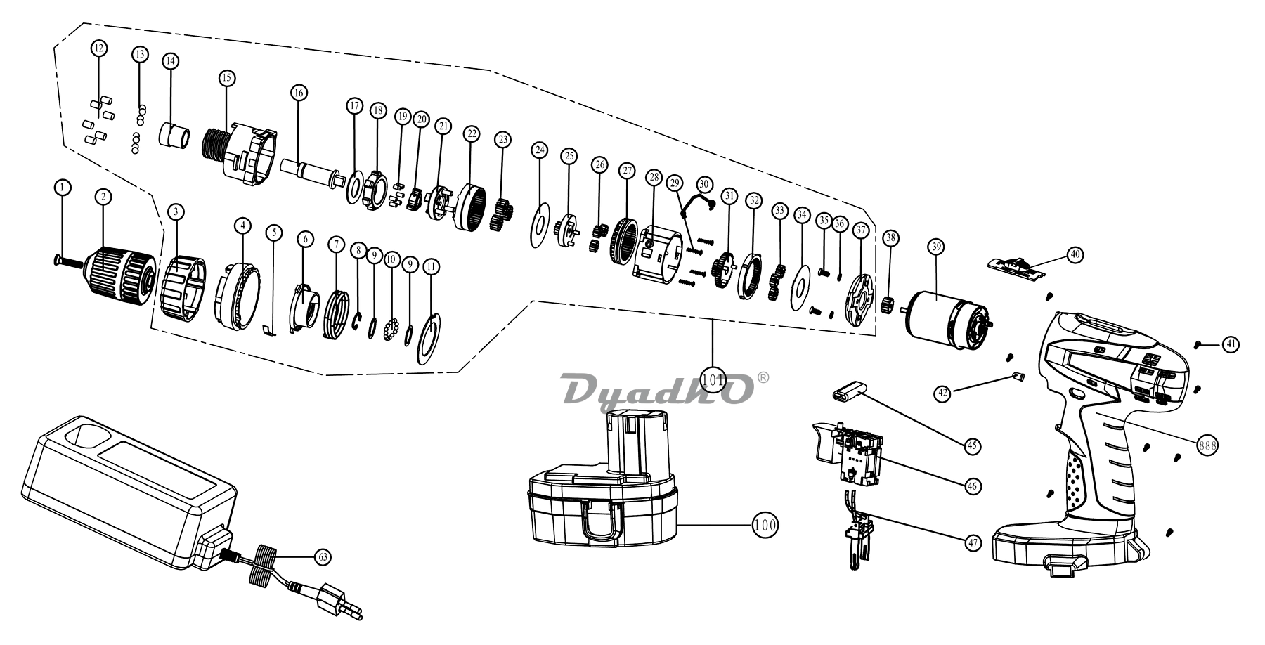 Схема шуруповерта зубр