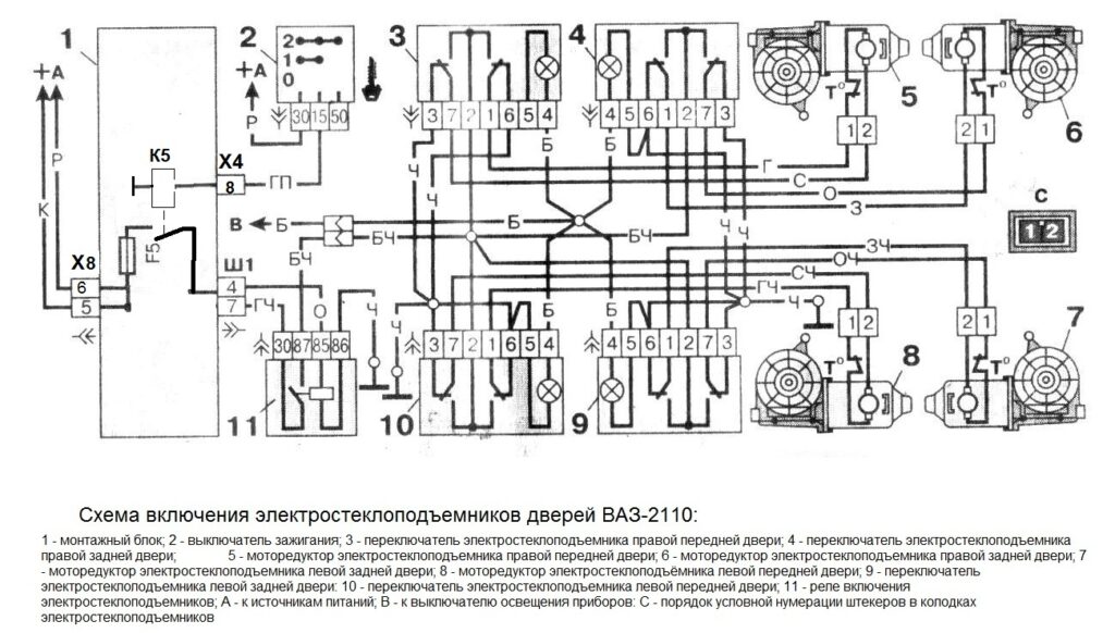 Схема стеклоподъемников ваз 2106