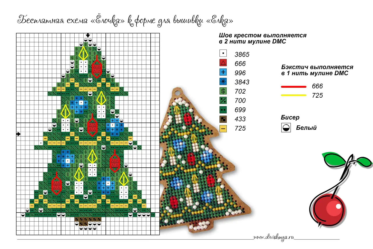 Схема вышивки елочной игрушки