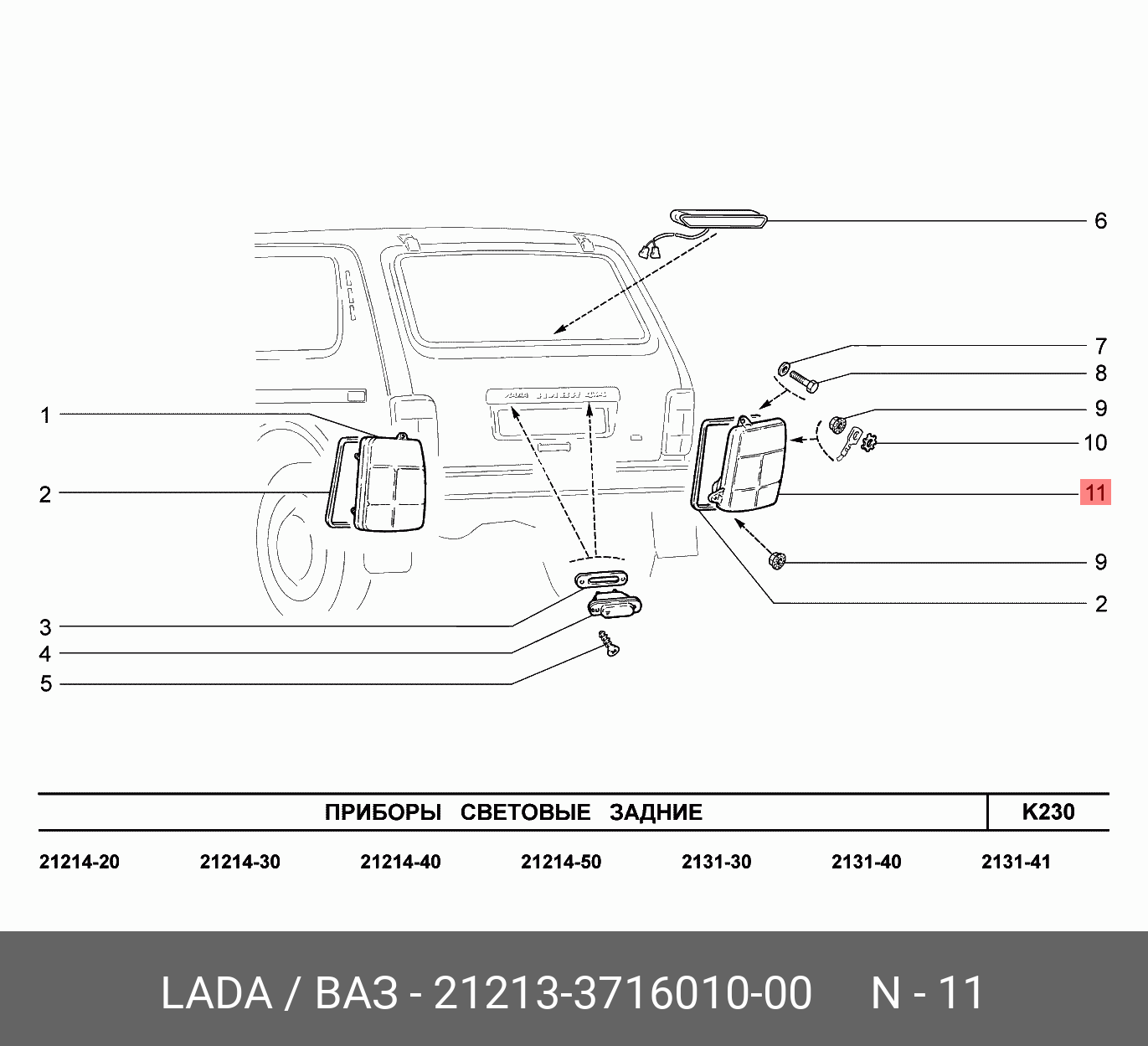 Схема задних фонарей на ниве