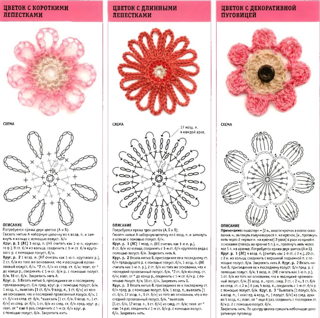 Схемы Цветов Крючком Фото