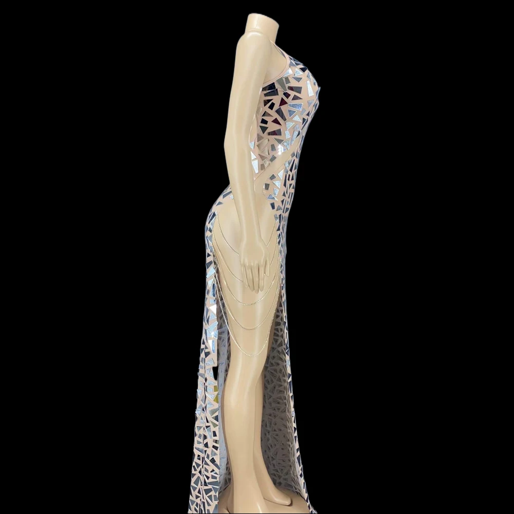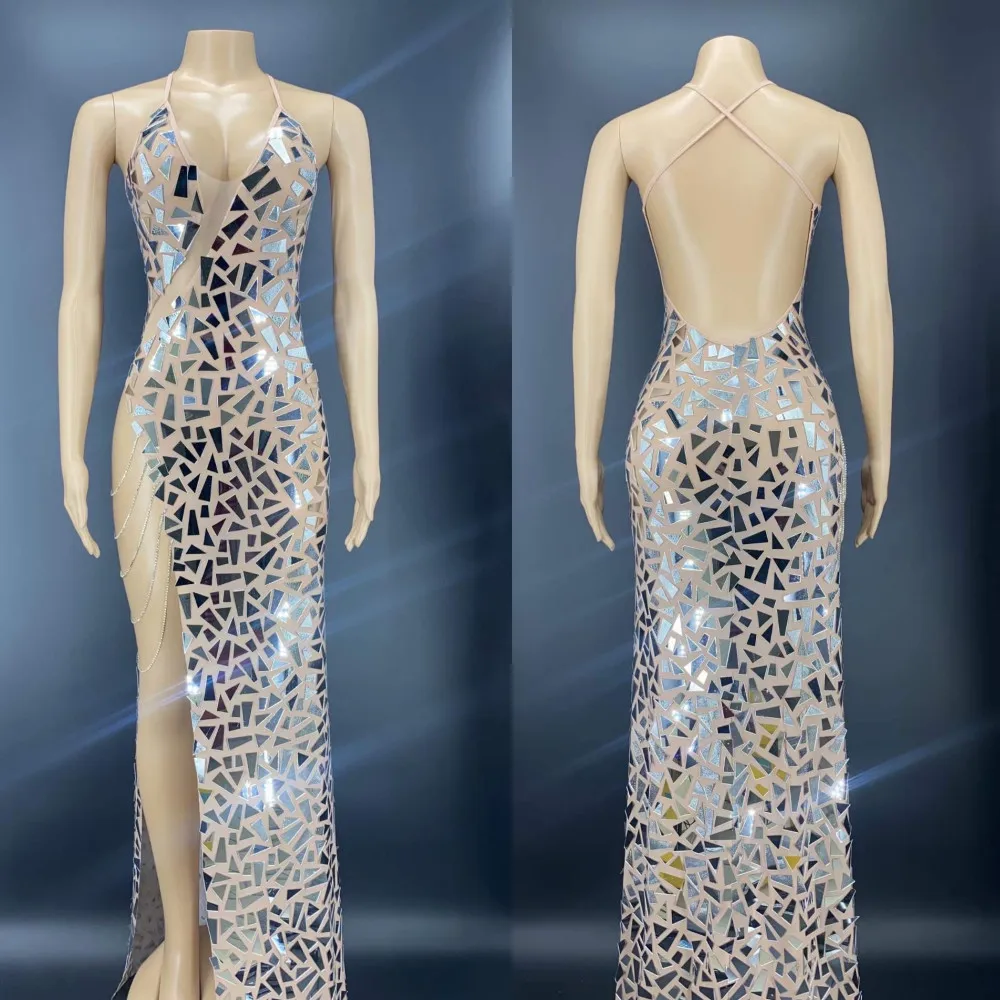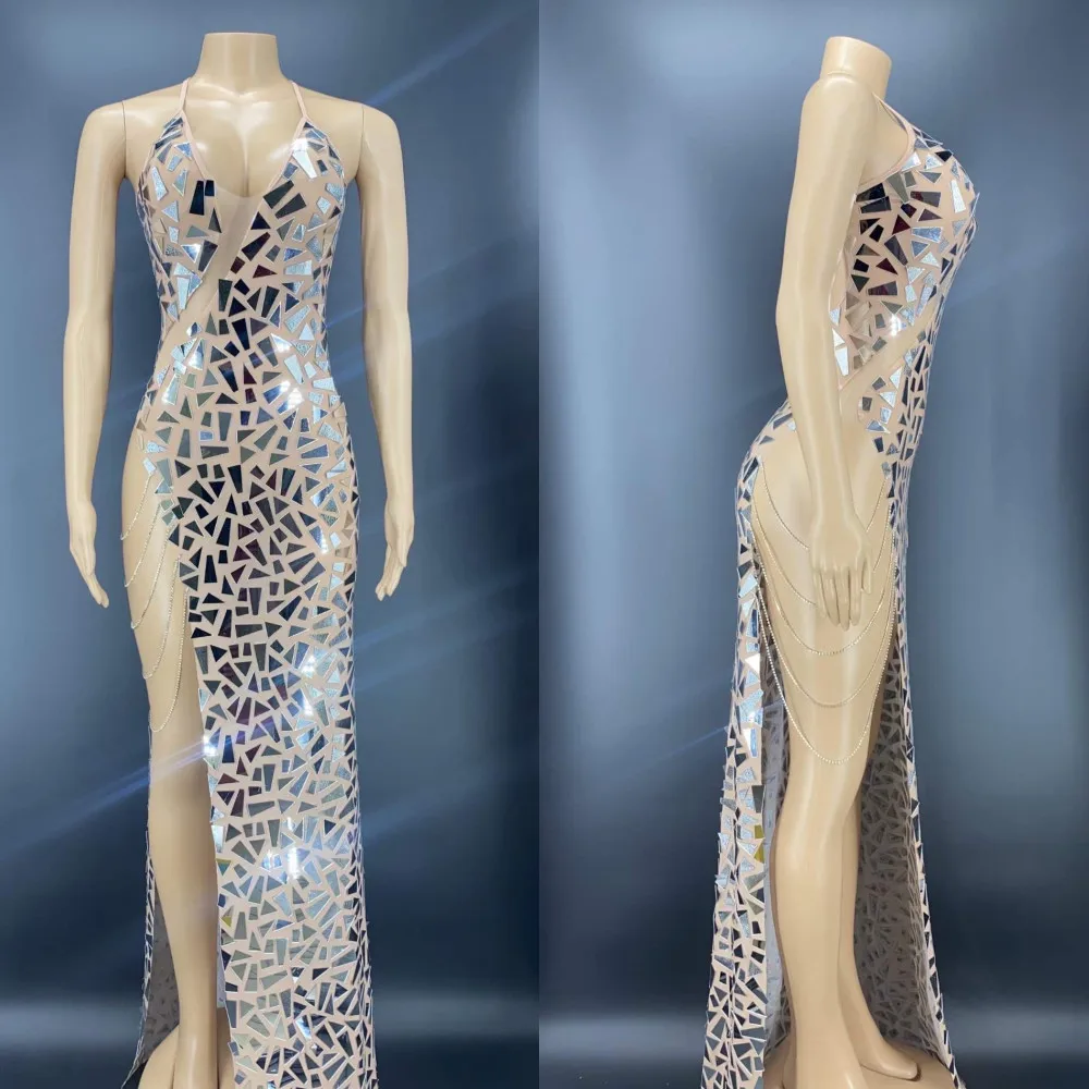BrNdiNcjtLooked for Shining Mirrors Rhinestones Chains Mesh Transparent Dresses sexy side high split Sparkly Sequins Prom Trailing Dress for women for a long time, but could not find it? Bring to your attention Shining Mirrors Rhinestones Chains Mesh Transparent Dresses sexy side high split Sparkly Sequins Prom Trailing Dress for women with the best price!