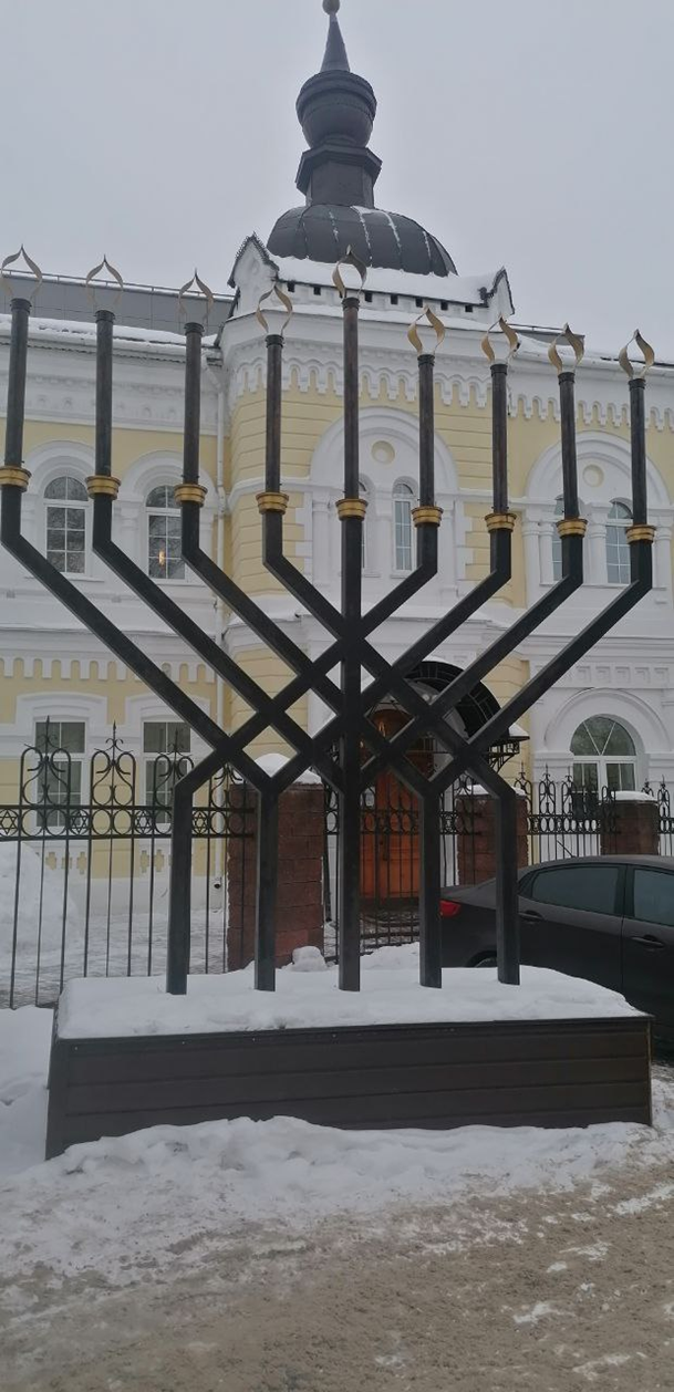 Я уже давно порывался посетить иудейское место для молитв. Нижегородская Синагога находится недалеко от Покры на Грузинской улице в арке прямо напротив огромного здания банка(иронично) и выделяется из не самой живописной местности своим огромным подсвечником.