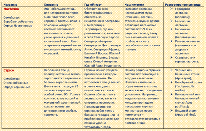 Сходство и различия стрижей и ласточек кратко