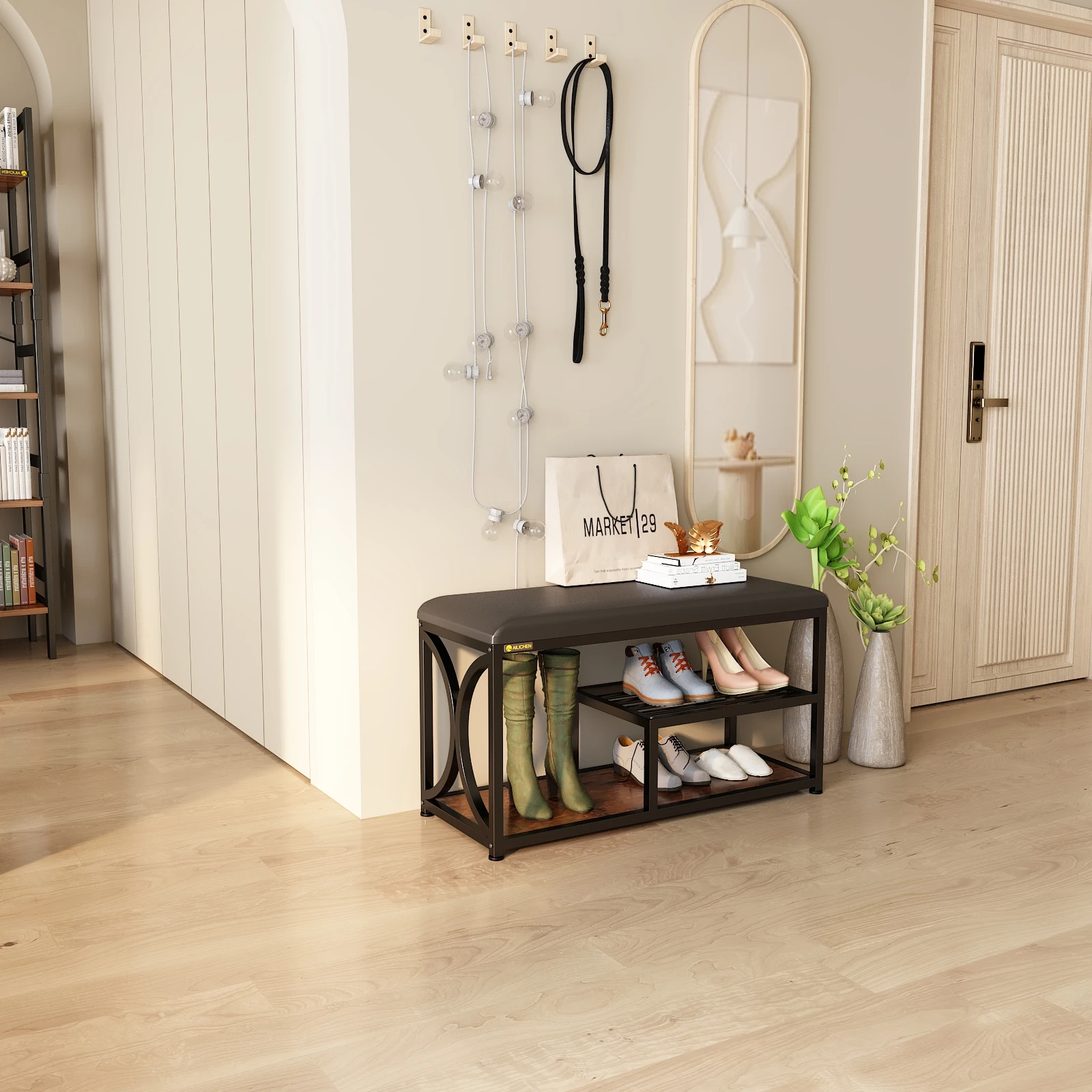 FnlVKrrFdoHere you can buy Shoe Rack Bench for Entryway with Padded Seat,Industrial Entry Bench with Shelf for Small Spaces,Shoe Rack,Padded Storage Bench with free delivery to your post office.