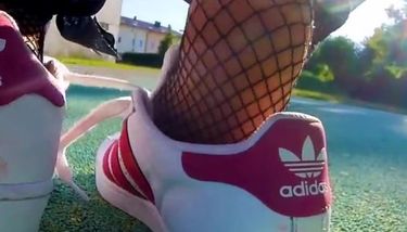 Shoeplay dangling dipping nylons sneakers feet compilations