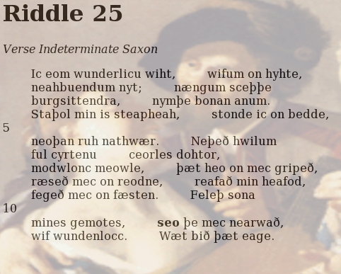 41. “I dream’d this mortal part of mine Was Metamorphoz’d to a Vine; Which crawling one and every way Enthralled my dainty Lucia. Me thought, her long small legs & thighs I with my Tendrils did surprize; Her Belly, Buttocks, and her Waste By my soft Nerv’lits were embrac’d: About her head I writhing hung, And with rich clusters (hid among The leaves) her temples I behung: So that my Lucia seem’d to me Young Bacchus ravisht by his tree. My curles about her neck did craule, And armes and hands they did enthrall: So that she could not freely stir, (All parts there made one prisoner.) But when I crept with leaves to hide Those parts, which maids keep unespy’d, Such fleeting pleasures there I took, That with the fancie I awook; And found (Ah me!) this flesh of mine More like a Stock, than like a Vine.” — “The Vine” by Robert Herrick