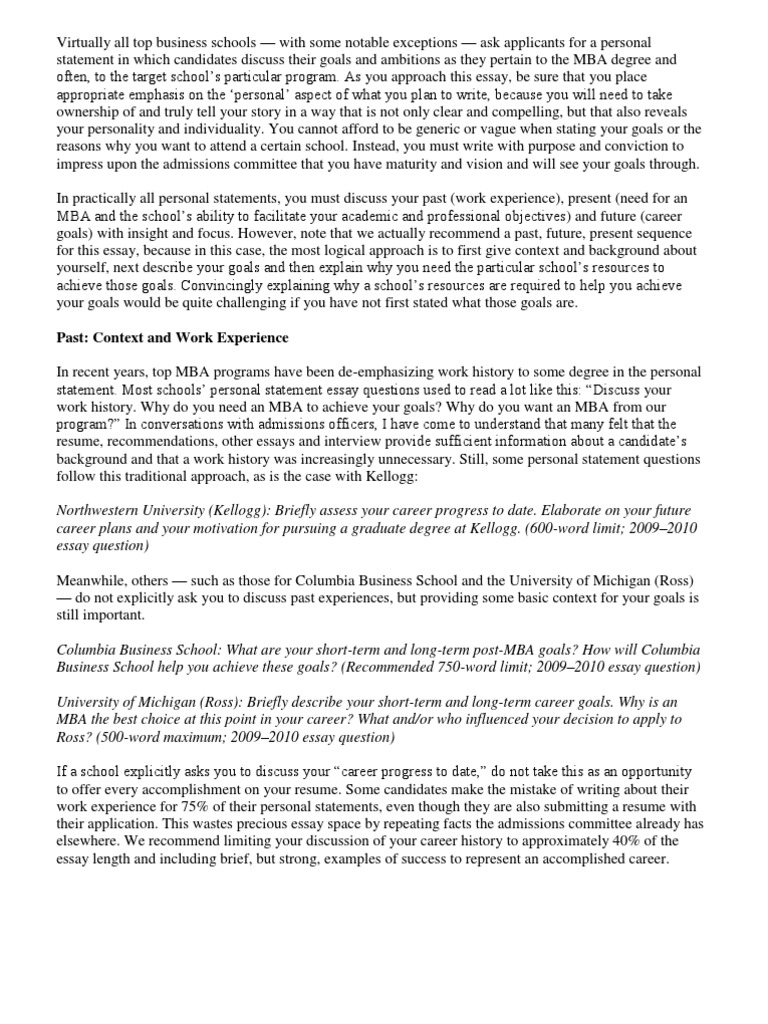 MBA Career Goals Essay Examples - Stacy Blackman . . .