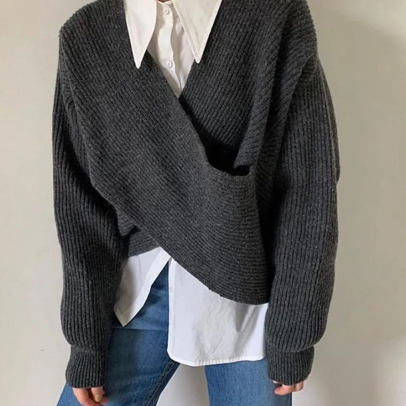 «Short sweater women's design feeling loose wear lazy autumn new cross V-neck pullover sweater top» по лучшей цене на рынке! Всего за 39$ (3705рублей)