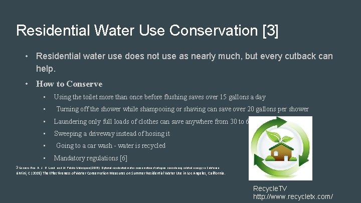 Recent US Water Shortage Maps and Conditions . . . . You can also take a "navy shower" by turning the water off while you wash and turning it back on to rinse off soap and shampoo . Recycle shower water: Put a bucket in the shower to catch some of the water . You can use that water to supplement your yard sprinklers, water plants, or wash your dog .