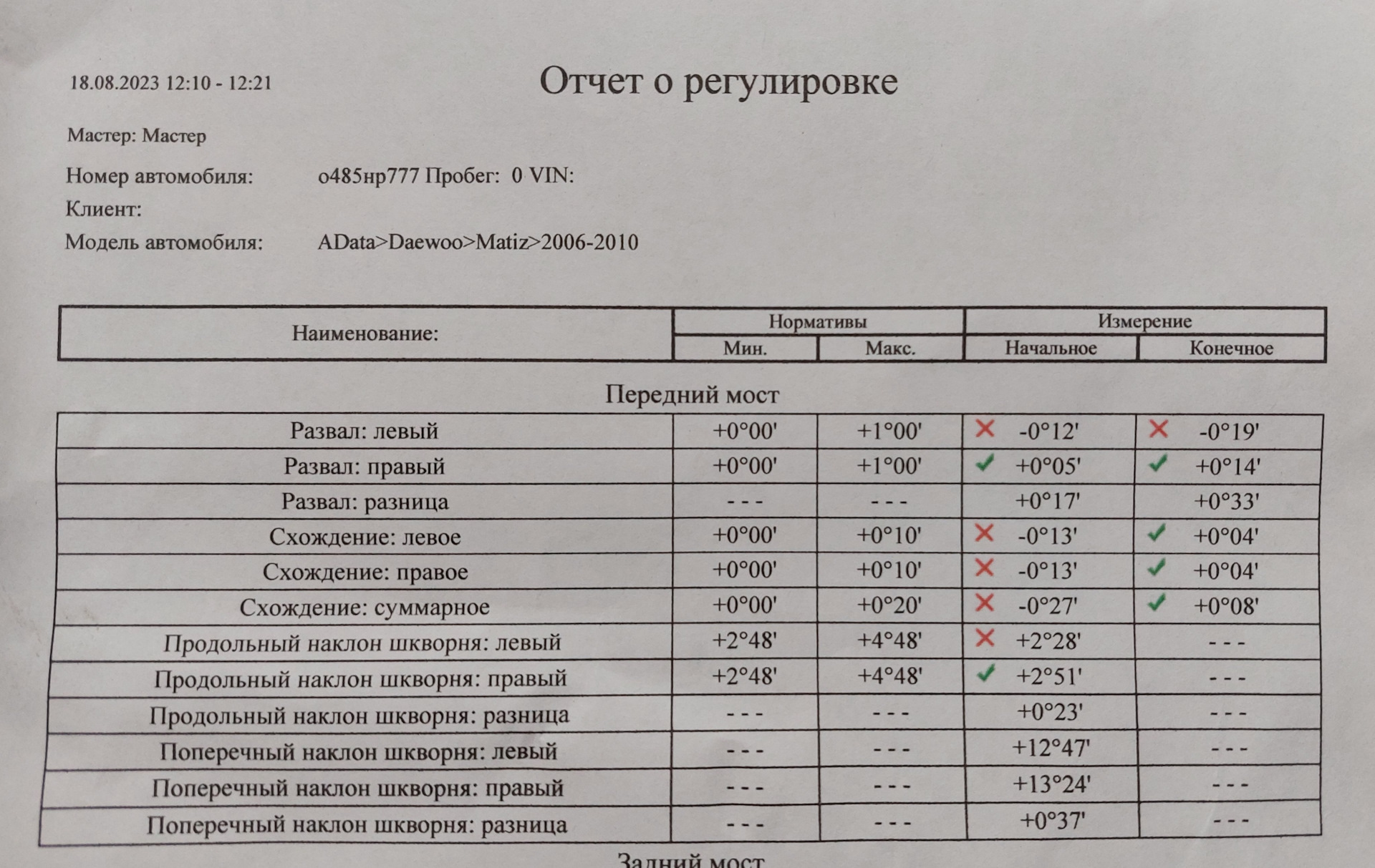 Схождение дэу матиз 113 фото